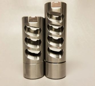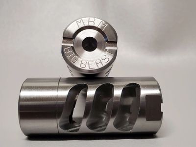 d.I have these done in 3 and 4 ports with 9/16x24 threads. You can see that the cap is the same diameter as the brake on these. The 4 port in the picture has the cap backed off 1 revolution (or the max it would need to be backed off). These are a max port brake, since they can't be turned down, so the port size is only about .025" shorter then a normal 1 piece Beast brake. That will make them more effective then a standard 1 piece Lil Beast brake. The 3 ports weigh 3.0 oz, are 2.32" long, and run 120.00 shipped. The 4 ports weigh 3.7 oz, are 2.77" long, and run 125.00 shipped.