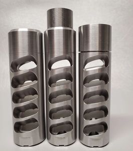 The 4 port version is 2.76" long (fully collapsed), 1.01" for the brake and the cap, and come in 5/8x24 and 11/16x24 threads. The back of the cap is tapered to .940". These weigh 4.9 oz and are $125.00 shipped.