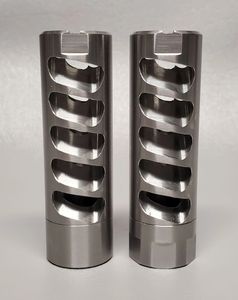 Here is a little run down on how brakes work and why mine are more effective.....gases from a rifle typically exit the muzzle following the bullet but dissipate rapidly when they exit the barrel because of how light they are. A muzzle brake redirects those gases to reduce the recoil. Brakes that have baffles/holes angled forward are less effective then those that are 90 degrees to the bullet travel and those that angle back are more effective then those at 90 degrees. If you squirt a garden hose into your hand with your fingers barely bent it hardly deflects the water. As you bend your fingers more it "grabs" more water. When you make a full cup out of your hand it captures the most water. Muzzle brakes work the same way. My brakes are more effective because the ports are angled back towards the shooter capturing the most gas and using it to pull the rifle forward. While no brake is really ear safe, brakes like mine, can be even harder on the ears because of how the gases/concussion are redirected. They do not change the decible level of the gun but it changes where that noise goes, like changing the direction of the water in the example above, which appears to make the brake louder. I do not recommend shooting any brake without hearing protection as they WILL cause hearing damage no matter the angle of the ports. Loud is loud and guns are loud enough to cause hearing damage without a brake. The up side to having the ports out to the side or back towards the shooter is that game animals have a harder time locating where the shot came from and many times they will run towards you. If you want to shoot without hearing protection I highly suggest purchasing a suppressor as muzzle brakes are not hearing safe.